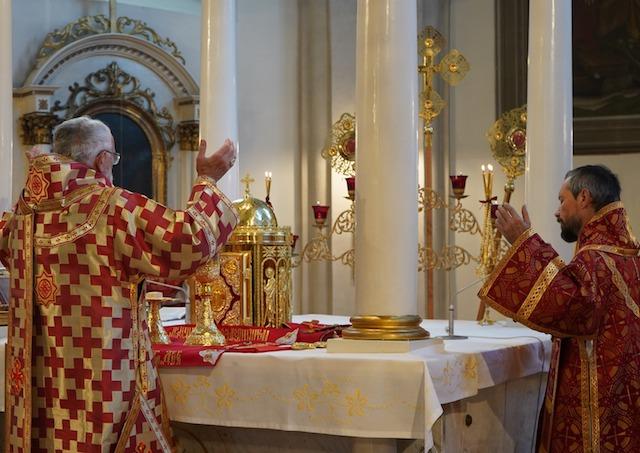 Archijerejskú svätú liturgiu spoločne s vladykom Petrom Rusnákom slávil vladyka Milan Lach SJ a viac ako 30 kňazov s dvomi diakonmi. Homíliu ohlásil Daniel Galajda, farár katedrálnej farnosti. Hovoril o postoji farizejov, ktorí povýšili zákon nad všetko, stali sa z nich legalisti. Zákon, Boží zákon, musí veriaci žiť s chápaním Kristovej lásky, lebo zákon bez lásky sa stáva len akýmsi paškvilom.