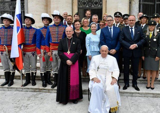 Vatikán 20. septembra (TK KBS) Na Námestí sv. Petra vo Vatikáne počas dnešnej generálnej audiencie vialo množstvo slovenských vlajok. Do Ríma prišli členovia Ordinariátu ozbrojených síl a ozbrojených zborov SR na čele s ordinárom Mons. Františkom Rábekom spolu s približne 400 pútnikmi. Ordinariát tento rok slávi 20. výročie svojho založenia.