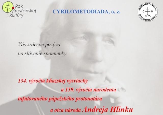 Bratislava 22. septembra (TK KBS) V stredu 27. septembra 2023 si pripomenieme 159. výročie narodenia Andreja Hlinku. Don Jozef Slivoň, rektor Katedrály sv. Šebastiána, bude pri príležitosti 134. výročia kňazskej vysviacky a 159. výročia narodenia Andreja Hlinku celebrovať v sobotu 23. septembra 2023 o 18:00 svätú omšu v Katedrále sv. Šebastiána na Peknej ceste v Bratislave-Krasňanoch.