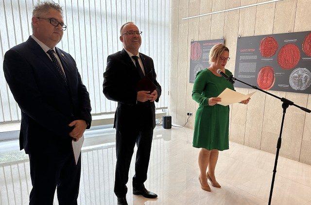 Riaditeľka Štátneho archívu v Bratislave Lenka Bartalosová na mikrofón Martina Jarábeka, vedúceho Slovenskej redakcie Vatikánskeho rozhlasu – Vatican News prezradila bližšie podrobnosti vzniku tejto unikátnej výstavy. Myšlienka vznikla vďaka množstvu zozbieraných prevažne farských pečatí s náboženskou tematikou. Pečate majú aj dnes právnu, historickú a kultúrnu hodnotu. Slúžia na overenie informácie o vydavateľovi písomností, podobne ako dnes pečiatky. Ďalšia ich funkcia bola na uzatváranie listov, bolo ich nutné rozlomiť. Pečate sú naďalej jedným z najdôležitejších prameňov pre historikov.