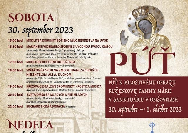 Obišovce 26. septembra (TK KBS) V dňoch 30. septembra a 1. októbra 2023 bude odpustová slávnosť Ružencovej Panny Márie v Diecéznom sanktuáriu v Obišovciach. Fatimskú pobožnosť povedie košický arcibiskup metropolita a predseda Konferencie biskupov Slovenska Mons. Bernard Bober. Slávnostnú svätú omšu bude celebrovať rožňavský biskup Mons. Stanislav Stolárik.