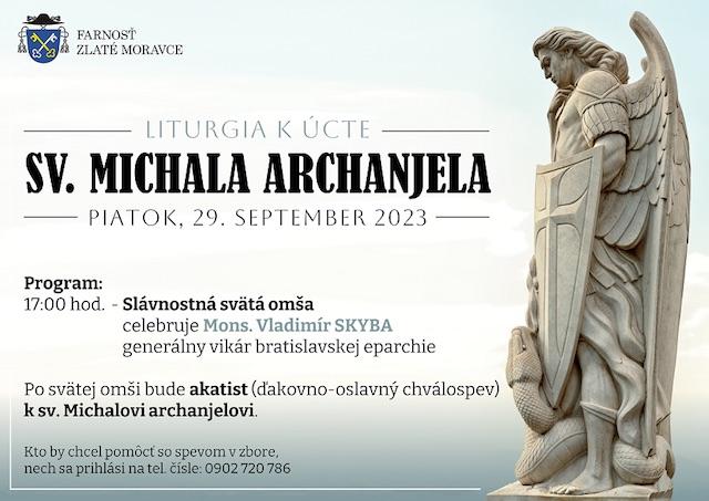 Zlaté Moravci 26. septembra (TK KBS) Farnosť v Zlatých Moravciach pozýva veriacich na slávnostnú svätú omšu, ktorá sa bude konať pri príležitosti sviatku sv. Michala archanjela, patróna farského kostola v piatok 29. septembra 2023 o 17:00.