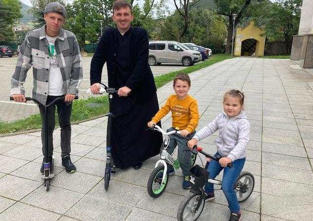 Ružomberok 2. októbra (TK KBS) Vo farnosti sv. Andreja v Ružomberku sa v nedeľu po svätej omši za účasti detí konalo požehnávanie bicyklov, kolobežiek a odrážadiel. „Aj takýmto spôsobom chceme prosiť o požehnanie, práve pri používaní týchto dopravných prostriedkov. Tiež sme zvolávali ochranu svätého Krištofa, ktorý oroduje za tieto deti a aj za dospelých, ktorí si nechali požehnať bicykle,“ povedal kaplán farnosti Filip Orlovský. Každý dostal nálepku sv. Krištofa, mohol si načapovať malinovku, deti dostali rôzne kľúčenky a cukríky. Potom sa na záver previezli po Námestí Andreja Hlinku.