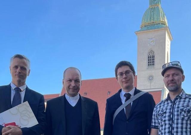 Pamätný list predsedu KBS Mons. Bernarda Bobera s pamätnou medailou z návštevy pápeža Františka na Slovensku počas svätej omše v Katedrále sv. Martina v Bratislave prevzali od bratislavského pomocného biskupa Mons. Jozefa Haľka štyria členovia stránky – Daniela Mikulíková (pre chorobu nebola prítomná), Róbert Sopko, Michal Makovník a Jozef Martiniak.