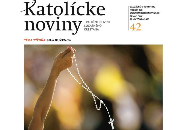 Bratislava 18. októbra (TK KBS) Najnovšie Katolícke noviny (42) sa venujú téme modlitby posvätného ruženca. Je to duchovný liek na každý deň. Prinášajú niekoľko konkrétnych príkladov, akú silnú moc mal a vždy má. Súčasťou najnovšieho vydania je aj tradičná Misijná príloha, ktorá vychádza pri príležitosti Misijnej nedele. Tá sa tento rok na Slovensku zameriava na Benin. Hoci je Cirkev v tejto západoafrickej krajine mladá, nepôsobia tam už nijakí zahraniční misionári. Naopak, miestni kňazi sa stávajú misionármi.