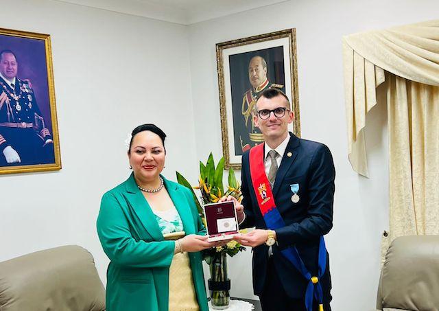 Canberra 19. októbra (TK KBS) Generálny tajomník žilinského združenia Servare et Manere Marek Sobola dnes na pôde Veľvyslanectva Kráľovstva Tonga v Canberre odovzdal jedno z najvyšších ocenení tejto organizácie so špeciálnym štatútom pri OSN ECOSOC. Jej Kráľovská Výsosť princezná Lātūfuipeka Halaevalu Mata'aho Napua-o-kalani Lavaka 'Ata Tuku'aho sa stala laureátkou Pamätnej medaily Stromu pokoja v špeciálnej triede s rubínmi. Medaila bola Jej Kráľovskej Výsosti udelená za výnimočné zásluhy v oblasti spájania národov, šírenie environmentálneho povedomia, ako aj za podporu mieru a priateľstva medzi krajinami. Vyznamenanie počas ceremoniálu udelenia požehnal reverend Viliami Tu'inukuafe. Na slávnostnom akte odovzdania sa zúčastnil aj Curtis Tu'ihalangingie, úradujúci veľvyslanec Tongy.
