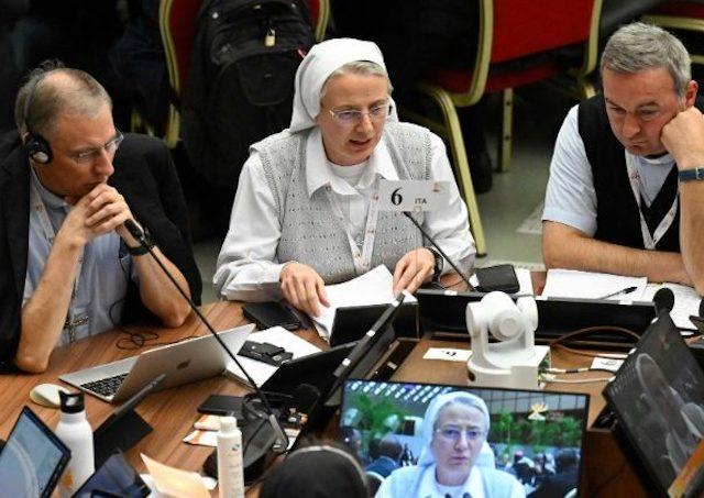 Potom sa slova ujala sestra Maria Nirmaliniová, Indka, generálna predstavená sestier apoštolského karmelu a predsedníčka Konferencie rehoľníkov v Indii, najväčšej skupiny katolíckych rehoľníkov na svete, ku ktorej patrí viac ako 130 000 príslušníkov. Rehoľníčka, ktorá sa podieľa na práci Medzinárodnej únie vyšších rehoľných predstavených, zdôraznila blízkosť v modlitbe svojich zasvätených krajanov, ktorí ju sprevádzajú na tejto „krásnej skúsenosti a nádhernej ceste“, ktorou je synoda, kde „každý z účastníkov, aj bez toho, aby sa poznali, a napriek rôznym kultúram a prostrediam, sa v úplnej slobode podelili s kardinálmi, biskupmi, teológmi, mladými rehoľníkmi a rehoľníčkami, laikmi, s jednoduchým človekom, ako som ja, o svoje skúsenosti a myšlienky bez strachu a nátlaku“. Keď sa teda vráti do Indie, povedala sestra Nirmaliniová, prinesie so sebou „niečo, čo sa neskončilo v Ríme: synodálna cesta je nepretržitý proces, ktorý bude pokračovať“ a „bude zahŕňať všetkých členov komunít“. Mníška potom upozornila na dôležitosť každého momentu zdieľania, modlitby za mier, migrantov a utečencov. „Bez ohľadu na náš pôvod sme všetci členmi Božej rodiny,“ uzavrela.
