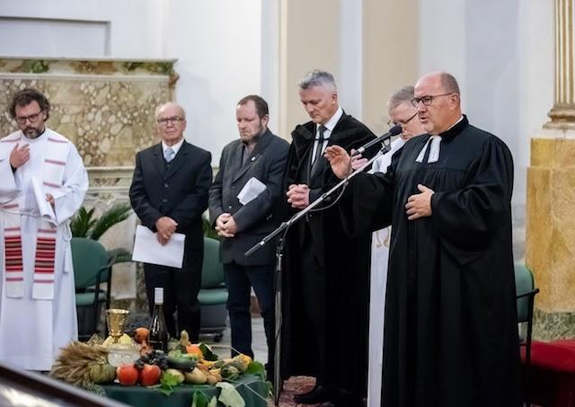Ekumenickú bohoslužbu poďakovania za úrodu moderoval Dušan Havrila, moderátor Ekumenického spoločenstva a privítal bratov a sestry zo Židovskej náboženskej obce so svojim predsedom Ivanom Skljarszkym. Modlitby sa niesli v duchu biblických textov z Piatej knihy Mojžišovej 8, 5-14 a z Listu Filipanom 4, 10-13 – ako vďaku za prijaté dary a Evanjelia podľa Lukáša 12,13-31 v podobenstve o boháčovi, informovala TK KBS Marieta Koščíková.