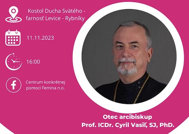 Levice 3. novembra (TK KBS) Farnosť Levice-Rybníky a Centrum konkrétnej pomoci Femina n. o. pozývajú na Večer milosrdenstva. Uskutoční sa 11. novembra o 16:00 v Kostole Svätého Ducha vo farnosti Levice-Rybníky. V programe je svätá omša a moderovaná adorácia s piesňami. Počas nej bude možné pristúpiť k sviatosti zmierenia a k modlitbe príhovoru. Hosťom bude arcibiskup Cyril Vasiľ, predseda Rady KBS pre rodinu.