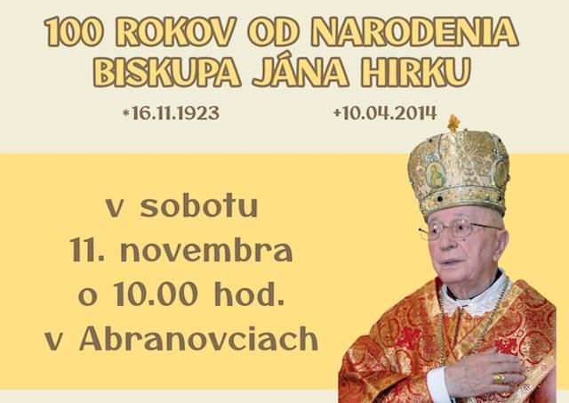 Prešov 7. novembra (TK KBS) V sobotu 11. novembra sa v Abranovciach uskutoční liturgická slávnosť, pri ktorej si gréckokatolíci pripomenú 100. výročie od narodenia biskupa Jána Hirku.