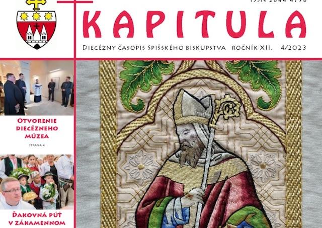 Spišská Kapitula 8. novembra (TK KBS) Vyšlo nové číslo internetového časopisu Spišského biskupstva Kapitula (4/2023). Prináša zaujímavosti zo života v diecéze a niekoľko podnetných článkov, ktoré určite čitateľa obohatia. Nechýba spomienka na bývalého spišského biskupa Mons. Štefana Sečku, ktorý zomrel pred tromi rokmi. Hlavnou časťou čísla je informácia o novom biskupovi diecézy, ktorým sa stal Mons. František Trstenský. Pozýva aj k spomienke na Jána Nepomuka Gustíniho Zubrohlavského a ďalším textom.