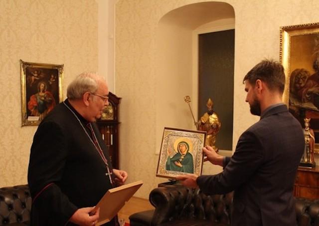 Na záver stretnutia v prijímacej sále si predstavitelia Poľska a Trnavskej partikulárnej cirkvi vzájomne vymenili dary. Predstaviteľ Trnavskej arcidiecézy, arcibiskup Ján Orosch daroval hosťovi z Poľska ikonu Trnavskej Panny Márie, aby si zachoval spomienku na najstaršie slobodné kráľovské mesto na území súčasného Slovenska aj cez toto vyobrazenie Bohorodičky.