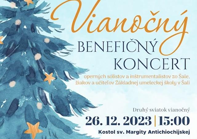 Šaľa 29. novembra (TK KBS) Mesto a Farnosť Šaľa pozývajú v spolupráci so Základnou umeleckou školou (ZUŠ) v Šali na vianočný benefičný koncert. V Kostole sv. Margity Antiochijskej v Šali vystúpia v Druhý sviatok vianočný 26. decembra 2023 o 15:00 operní sólisti a inštrumentalisti zo Šale, žiaci a učitelia ZUŠ v Šali. Vstupné je dobrovoľné, výnos bude použitý na opravu organa.