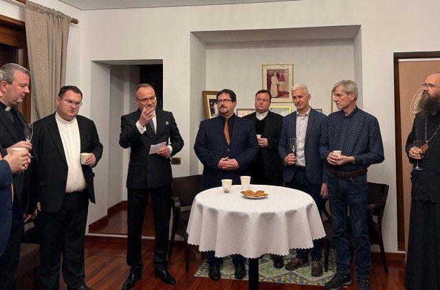 Na pozvanie veľvyslanca SR pri Svätej stolici a Zvrchovanom ráde Maltézskych rytierov Mareka Lisánskeho sa s riaditeľom Slovenského historického ústavu v Ríme Danielom Černým v priestoroch bývalej rezidencie kardinála Tomka, kde od septembra tohto roku sídli Slovenský historický ústav v Ríme, konalo tradičné predvianočné stretnutie Slovákov pôsobiacich v štruktúrach Rímskej kúrie.
