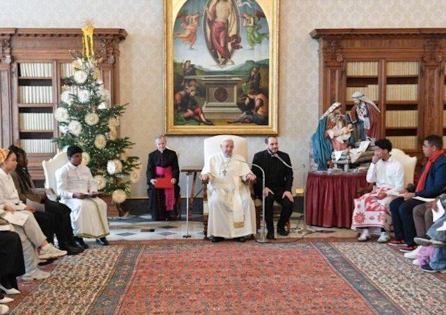 Pápež sa prítomným prihovoril spontánne a pripravený text im odovzdal v písomnej podobe. V súvislosti s Vianočným liturgickým obdobím, ktoré prežívame, Svätý Otec v texte pripomína, že Boh sa rozhodol zvestovať Dobrú zvesť o spáse pastierom na periférii, ktorí boli marginalizovaní a mali zlú reputáciu. „Boli chudobní, avšak mali ochotné srdce,“ zdôrazňuje v texte pápež. Mladých vyzýva objavovať existenčné periférie našich miest a prinášať tam posolstvo, ktoré bolo zvestované pastierom: «Nebojte sa! Zvestujem vám veľkú radosť, ktorá bude patriť všetkým ľuďom» (Lk 2,10).