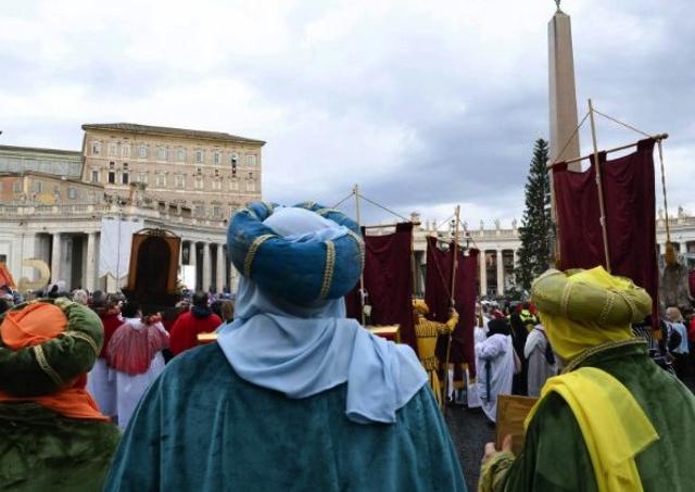 Dnes slávime Zjavenie Pána, teda jeho zjavenie sa všetkým národom, ktoré zosobnili Mudrci (porov. Mt 2, 1-12). Sú to múdri učenci, ktorí sa po tom, čo sa nechali osloviť zjavením hviezdy, vydali na cestu a prišli do Betlehema. Tam našli Ježiša „s Máriou, jeho matkou“, poklonili sa mu a obetovali mu „zlato, kadidlo a myrhu“ (v. 11).