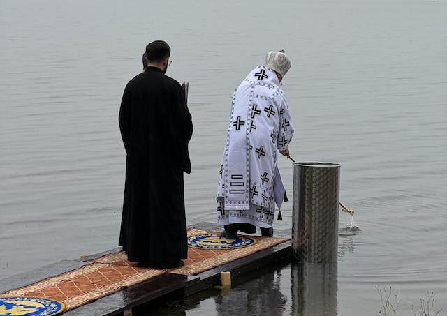 Po nej nasledovala dlhá modlitba, pri ktorej arcibiskup Vasiľ ponoril do vody najprv svietnik, potom trikrát na vodu dýchol v podobe kríža, potom trikrát prežehnal vodu rukou, pričom do nej ponoril prsty a nakoniec trikrát do vody ponoril kríž. Po modlitbách všetkých pokropil posvätenou vodou, ktorú si veriaci zobrali aj do svojich príbytkov.