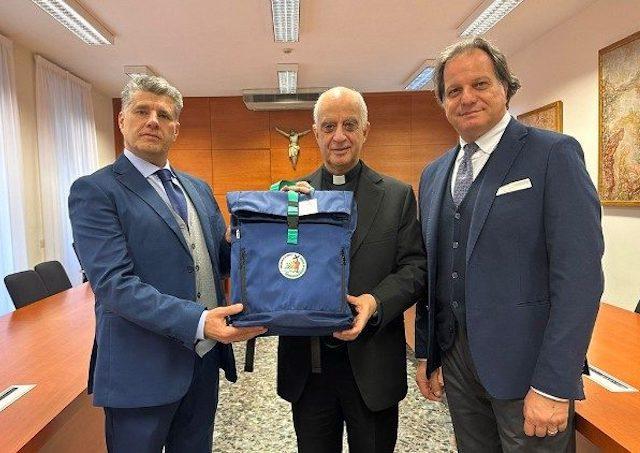 Spomedzi návrhov na výrobu batoha, o ktorú sa uchádzali viaceré podniky z Talianska i zahraničia, Dikastérium napokon vybralo ten od rímskej firmy „Steigip4“. Batoh obsahuje tzv. „Výbavu pútnika“, ktorú tvoria klobúk so širokou strieškou, šatka, fľaša na vodu, nepremokavé pončo a náramkový ruženec.