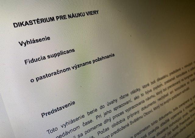 Bratislava 10. januára (TK KBS) Konferencia biskupov Slovenska (KBS) prináša na internetovej stránke www.kbs.sk oficiálny preklad Vyhlásenia Dikastéria pre náuku viery Fiducia supplicans o pastoračnom význame požehnania a tlačové vyhlásenie o prijatí tohto dokumentu (zo 4. januára 2024).