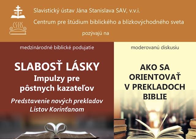 Preklady boli pripravené v Slavistickom ústave Jána Stanislava SAV. Sú voľne prístupne TU. Časť programu kvôli záujmu širšej verejnosti sa uskutoční v Mestskej knižnici v Bardejove. Bude ňou moderovaná diskusia s názvom Ako sa orientovať v biblických prekladoch. „Medzi najznámejšie pasáže z Listov Korinťanov patrí Pavlov Hymnus na lásku, ktorému sa pri predstavovaní nového prekladu chceme zvlášť venovať. S tým súvisel výber tém prednášok, ktoré môžu poslúžiť aj pôstnym kazateľom.“