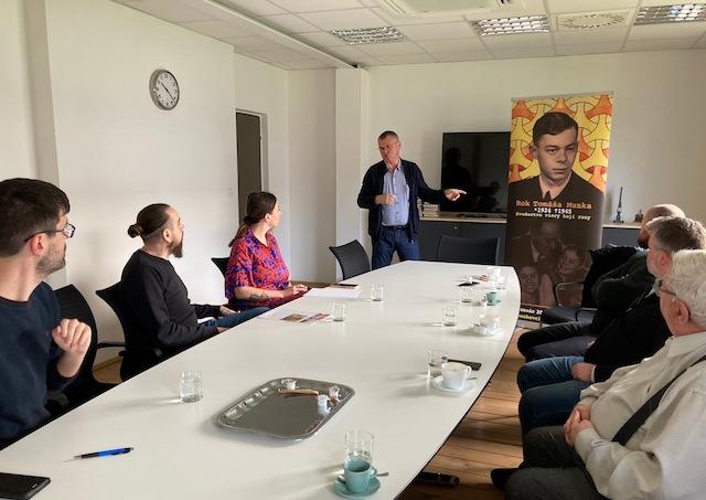 Štvorica jezuitských kňazov Dušan Bezák, Peter Buša, Oleksij Kurzakov a Jozef Bartkovjak spolu s historikom Petrom Dvorským hovorili s riaditeľom a pracovníkmi Múzea holokaustu o Roku Tomáša Munka i o formáte expozície, zamýšľanej na prvé mesiace roka 2025. Debatovali aj o historickom kontexte života Munkovcov a ďalších osobností tej doby.
