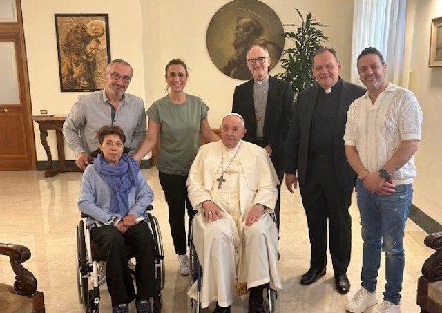 Vatikán 22. apríla (VaticanNews) Maria José Marques da Silva Carvalho, 60-ročná portugalská emigrantka v Nemecku, žijúca život plný lásky a priateľov – tých, ktorí ju volajú „dona Zeza“ – čo iné by si mohla priať v tomto poslednom zostávajúcom čase svojho života, než objať pápeža, ku ktorému, ako hovorí, je už roky pripútaná? Zopakovala to svojim priateľom v katolíckej komunite, ktorú navštevuje v Hamburgu, kam sa pred rokmi presťahovala so svojím manželom. Tak veľmi, že keď videli, ako sa Zezina amyotrofická laterálna skleróza (ALS), ktorou trpí, zhoršuje, hľadali spôsob, ako jej želanie splniť.