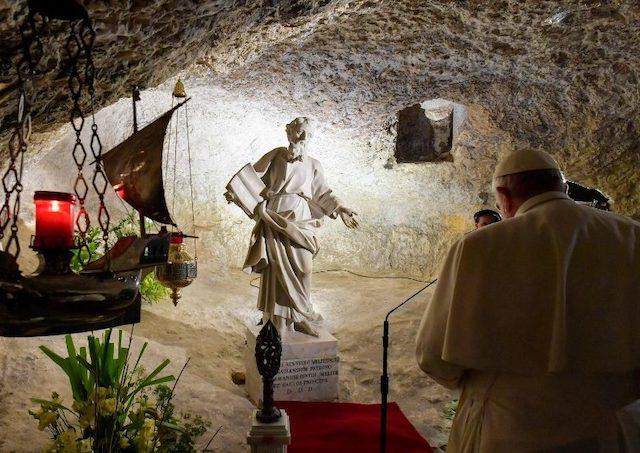 Už pred pápežom Františkom navštívili Jaskyňu sv. Pavla dvaja pápeži: v roku 1990 sv. Ján Pavol II. a v roku 2010 Benedikt XVI., ktorý prišiel ako pútnik pri 1950. výročí pobytu sv. Pavla na ostrove.