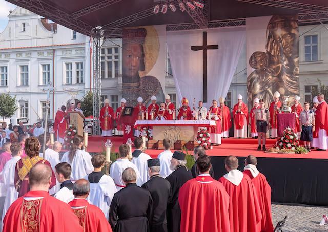 Stará Boleslav 29. septembra (TK KBS) Tisíce pútnikov sa v nedeľu zišli v Starej Boleslavi, aby si slávnostnou omšou pripomenuli odkaz patróna Čiech svätého Václava. Vrcholom Národnej svätováclavskej púte bola bohoslužba na Mariánskom námestí, ktorú celebroval apoštolský nuncius Jude Thaddeus Okolo. Homíliu predniesol pražský arcibiskup Ján Graubner za účasti českých a moravských biskupov.