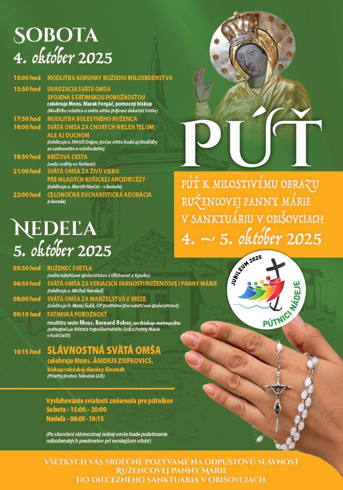 Obišovce 29. septembra (TK KBS) V dňoch 4. a 5. októbra 2025 ude púť k milostivému obrazu Ružencovej Panny Márie v Obišovciach. Nedeľnú slávnostnú svätú omšu bude celebrovať biskup rakúskej diecézy Eisenstadt Mons. Ägidius Zsifkovics.
