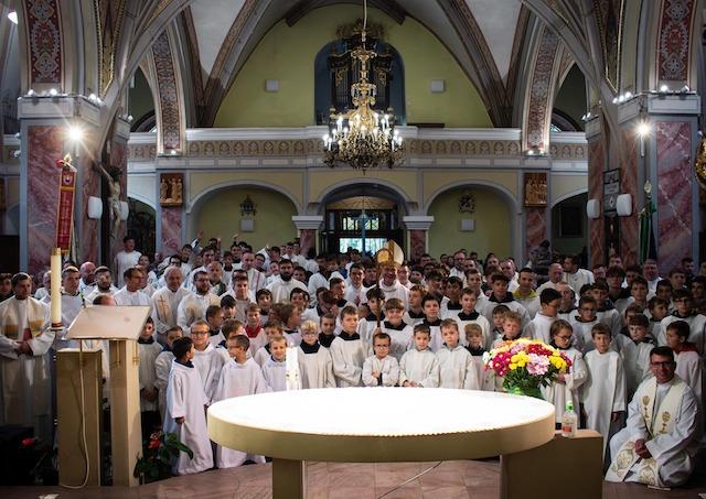 Slávnostnú svätú omšu celebroval banskobystrický biskup Mons. Marián Chovanec. V homílii sa miništrantom prihovoril s príkladom zo života sv. Vincenta, ktorého sviatok Cirkev v ten deň slávila, a povzbudil ich k ochotnej a radostnej službe pri oltári i v každodennom živote. Po svätej omši nasledovala netradičná „talk show s biskupom“, v rámci ktorej mali miništranti možnosť položiť otázky svojmu pastierovi. Atmosféra bola uvoľnená, plná zvedavosti i humoru, no najmä úprimného záujmu mladých o vieru a službu v Cirkvi.