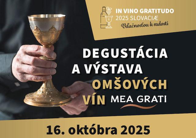 Košice 10. októbra (TK KBS) Vo štvrtok 16. októbra 2025 sa v priestoroch Dolnej brány v Košiciach uskutoční degustácia a výstava omšových vín In Vino Gratitudo – Vo víne je vďačnosť. Nad podujatím prevzali záštitu košický arcibiskup metropolita Mons. Bernard Bober a arcibiskup Cyril Vasiľ SJ, košický eparchiálny biskup.