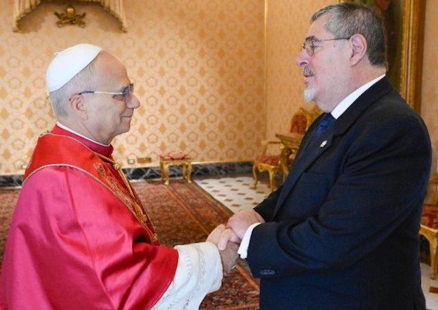 „Počas priateľských rozhovorov na Štátnom sekretariáte obe strany vyjadrili spokojnosť s dobrými vzťahmi medzi Svätou stolicou a Guatemalou, a tiež vôľu naďalej ich posilňovať,“ uvádza Tlačové stredisko Svätej stolice.