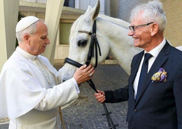 Vatikán 15. októbra (TK KBS) Poliak daroval pápežovi Levovi XIV. pred generálnou audienciou čistokrvného arabského koňa. K tomuto gestu ho inšpirovala fotografia augustiniánskeho pápeža na koni v Peru.