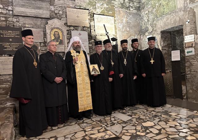 Rím 24. októbra (TK KBS) V Ríme sa dnes začala Jubilejná púť Gréckokatolíckej metropolitnej cirkvi sui iuris na Slovensku. Slovenskí gréckokatolícki biskupi so sprievodom navštívili na začiatku putovania Baziliku svätého Klimenta, kde sa modlili pri hrobe svätého Cyrila. Prešovský arcibiskup metropolita Mons. Jonáš Maxim v krypte vyjadril symboliku miesta: „Práve svätý Cyril priniesol Božie slovo našim predkom. V tejto modlitbe prosíme o príhovor jeho i svätého Metoda za všetkých pútnikov a ich úmysly.“ Arcibiskup zároveň posvätil ikonu svätého Cyrila pre metropolitný časopis Slovo, ktorý si Cyrila zvolil za svojho patróna. „Táto ikona je duchovným plodom našej púte – znak vďaky a pokračovania v diele ohlasovania slova, ktoré svätí Cyril a Metod zasiali na našej zemi,“ dodal v prítomnosti ďalších biskupov, kňazov a veriacich vladyka Jonáš Maxim. V sprievode boli niektorí protosynkeli, kancelári, ceremoniári, ktorí budú počas jubilejnej púte zabezpečovať priebeh liturgických a duchovných programov. Prišli aj viacerí pútnici. Nechýbalo mediálne zastúpenie, ktoré dokumentuje priebeh podujatia pre veriacich a širokú verejnosť. Po modlitbe sa presunuli do Lateránskej baziliky, kde oficiálne začali svoje jubilejné putovane v Ríme. Bazilika sv. Klimenta v Ríme patrí medzi najvýznamnejšie pútnické miesta spojené so sv. Cyrilom. V krypte tohto chrámu, zasväteného štvrtému pápežovi sv. Klimentovi, sa nachádza hrob svätého Cyrila, ktorý zomrel v Ríme 14. februára 869. Bazilika je tak nielen miestom modlitby, ale aj symbolom duchovných koreňov Slovákov a celého slovanského sveta. Pripomína korene našej kresťanskej viery a vzácny dar slovanského jazyka, ktorý svätí Cyril a Metod vtlačili do liturgie, kultúry a písma. Púte k hrobu sv. Cyrila siahajú do roku 1881, keď sa uskutočnilo vôbec prvé slovanské stretnutie z vďaky pápežovi Levovi XIII. za encykliku Grande Munus, ktorou v roku 1880 rozšíril úctu k svätým Cyrilovi a Metodovi na celú Cirkev. Blažený biskup Pavol Peter Gojdič S Bazilikou sv. Klimenta je spätý aj blažený hieromučeník Pavol Peter Gojdič, ktorý bol práve na tomto mieste 25. marca 1927 vysvätený za biskupa. Vysvätili ho biskupi Dionýz Nyáradi, Jozef Kocilovský a Konštantín Bohačovský. Táto udalosť sa stala dôležitým medzníkom v živote budúceho mučeníka a symbolicky spája jeho vernosť Cirkvi s poslaním svätých Cyrila a Metoda, ktorých dedičstvo bazilika uchováva. Zároveň predstavuje naplnenie túžby po koreňoch a spojení s vlastnou vierou, ktoré formovali jeho duchovný život.