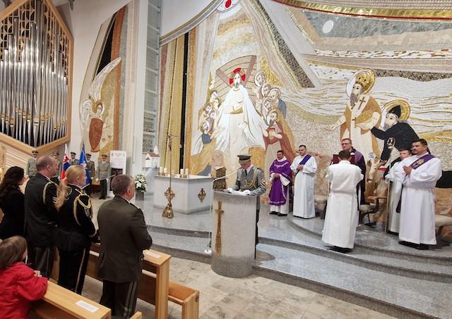 Bratislava 3. novembra (TK KBS) V nedeľu 2. novembra v deň Pamiatky zosnulých sa v Katedrále sv. Šebastiána v Bratislave-Krasňanoch uskutočnila svätá omša spojená s pietnym aktom modlitby, kladenia vencov a zapálenia sviec pri pamätníku pred katedrálou, ktorý bol venovaný zosnulým príslušníkom Ozbrojených síl a ozbrojených zborov SR, ktorí položili životy pri výkone svojej služby. V histórii Slovenskej republiky ich je takmer dvesto. Všetky mená sú vygravírované do kovovej knihy, ktorá tvorí súčasť pamätníka.
