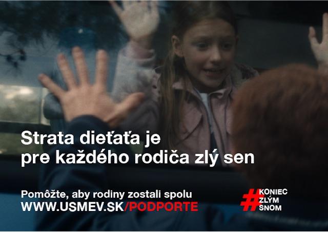 Bratislava 14. novembra (TK KBS) Organizácia Úsmev ako dar spúšťa celoslovenskú kampaň „Koniec zlým snom“, ktorá má pomôcť rodinám zápasiacim s chudobou a predísť tomu, aby sa deti dostávali do domovov. Podľa organizácie je rozpad rodiny jednou z najťažších skúseností, ktorú môže dieťa prežiť, a jeho následky výrazne ovplyvňujú psychický aj emocionálny vývoj dieťaťa.