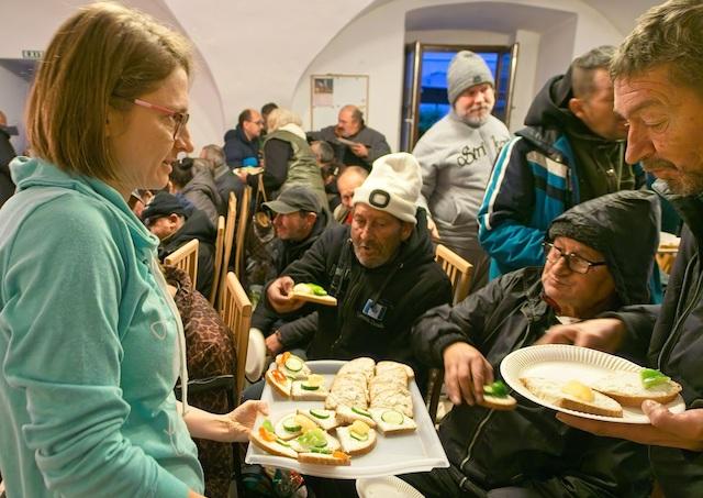 V Banskej Bystrici slávil svätú omšu v Kostole svätej Alžbety Kazimír Divéky. Liturgiu obetoval za chudobných a za zomrelých ľudí bez domova. Po liturgii nasledovalo spoločné pohostenie – fazuľová polievka, pagáče, koláče a káva. Atmosféru tradične dotváral Vladko, priateľ bez domova, ktorý zahral na gitare a harmonike. Mladí zo Sant’Egidio pripravujú podobné stretnutie pre ľudí v núdzi aj v Banskej Štiavnici, ktoré sa uskutoční v pondelok po slávení.