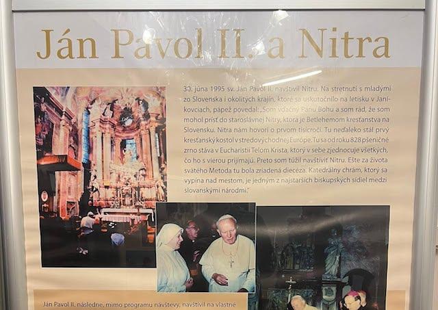 Nitra 10. decembra (TK KBS) V Misijnom dome Matky Božej v Nitre na Kalvárii sa uskutočnila vernisáž výstavy „Ján Pavol II. a Slovensko“, ktorá mapuje všetky tri apoštolské cesty sv. Jána Pavla II. pápeža na Slovensku. Podujatie sa konalo pod záštitou veľvyslanca Poľskej republiky na Slovensku Piotra Samereka.