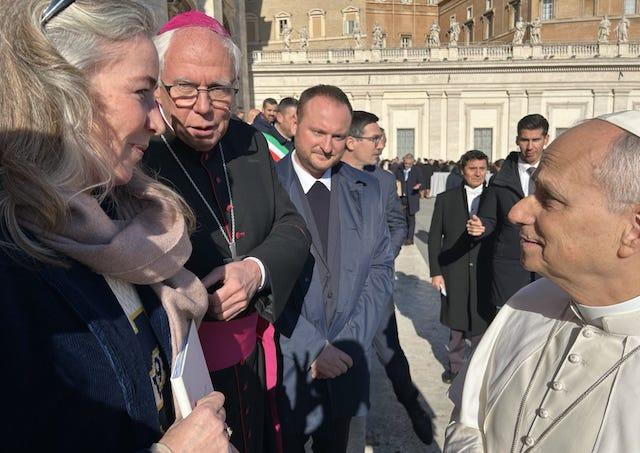 Počas krátkeho, ale srdečného stretnutia, ktoré nasledovalo po generálnej audiencii, členovia výkonného výboru pozdravili Svätého Otca a odovzdali mu vyhlásenie Justice & Peace Europe 2025 ku Dňu ľudských práv, ktorého tohtoročná spoločná európska téma znie Nádej pre svet práce. Pápež na to reagoval poďakovaním členom tejto organizácie. Udalosť, ktorá sa zhodovala s Medzinárodným dňom ľudských práv, bola významnou príležitosťou na potvrdenie záväzku Justice & Peace Europe brániť ľudskú dôstojnosť a základné práva v Európe i mimo nej.