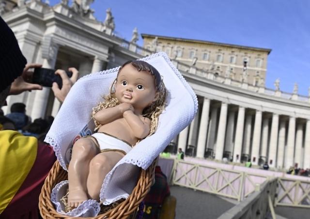 „Dnes osobitne pozdravujem deti a mládež z Ríma! Milí priatelia, prišli ste so svojimi rodinami a katechétmi, aby ste si dali požehnať jezuliatka, ktoré umiestnite do betlehemov vo svojich domoch, školách a oratóriách. Ďakujem Centru rímskych oratórií, ktoré zorganizovalo túto udalosť, a zo srdca požehnávam všetky jezuliatka.“ Následne ich pápež povzbudil k modlitbe, predovšetkým za mier vo svete: