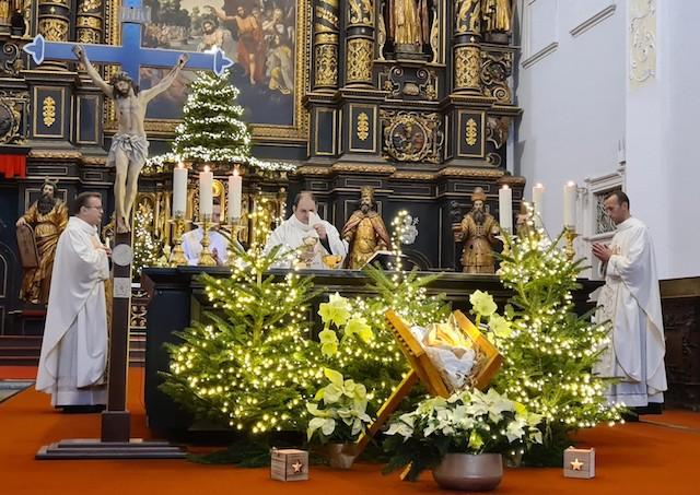 Trnava 27. decembra (TK KBS) Vo štvrtok 25. decembra veriaci oslávili slávnosť Narodenia Pána v Katedrále sv. Jána Krstiteľa v Trnave s generálnym vikárom Mons. Petrom Šimkom.