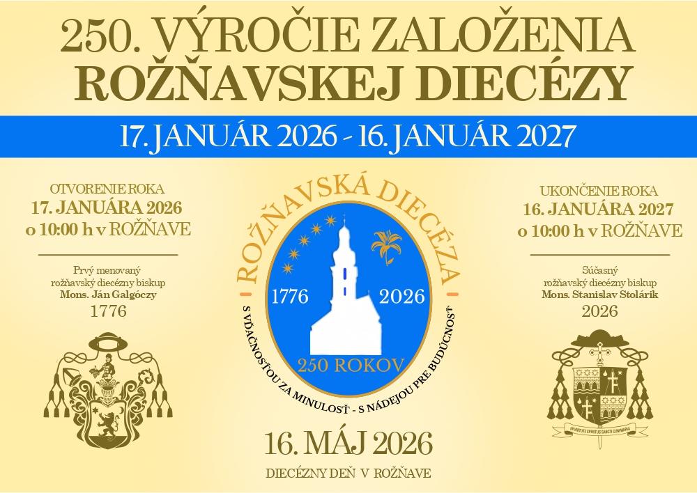 Rožňava 9. januára (TK KBS) Rožňavská diecéza slávnostne otvorí jubilejný rok pri príležitosti 250. výročia svojho založenia v sobotu 17. januára 2026. Súčasťou tejto významnej udalosti bude aj slávenie Dňa zasväteného života. Hlavné podujatia sa uskutočnia v Katedrále Nanebovzatia Panny Márie v Rožňave.