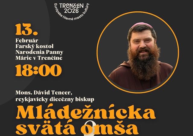 Trenčín 10. februára (TK KBS) Farnosť Trenčín v spolupráci s mestom Trenčín pozýva mladých ľudí i širokú verejnosť na slávnostnú mládežnícku svätú omšu, ktorá sa uskutoční v piatok 13. februára 2026 o 18:00 vo farskom Kostole Narodenia Panny Márie v Trenčíne pod hradom.