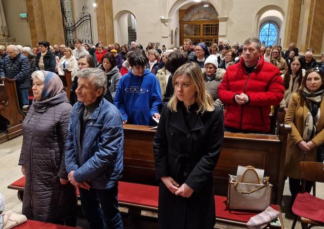 Trnava 25. februára (TK KBS) V Kostole Najsvätejšej Trojice v Trnave sa v utorok 24. februára uskutočnila svätá omša za pokoj na Ukrajine, za obete vojny a za vyprosenie spravodlivého mieru. Liturgia spojila ukrajinskú komunitu žijúcu v regióne s obyvateľmi Trnavy a priateľmi Ukrajiny v spoločnej modlitbe a kresťanskej jednote.