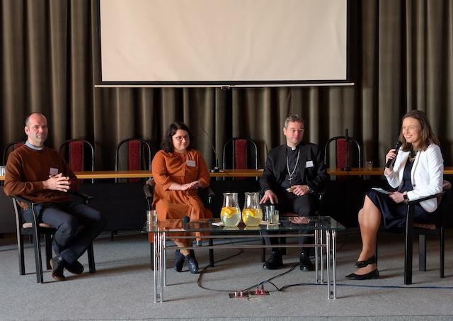 Nasledovala diskusia na tému „Raneným na blízku“ s Mons. Marekom Forgáčom, Radovanom Hasíkom a Zuzanou Vandákovou, ktorú moderovala lektorka online kurzov Jana Bieščad. Popoludní sa účastníci rozdelili do siedmich intervíznych skupín a pokračovali v diskusii o aktuálnych otázkach pastorálnej psychológie, ako aj vlastných skúsenostiach a výzvach, s ktorými sa stretávajú vo svojej službe.