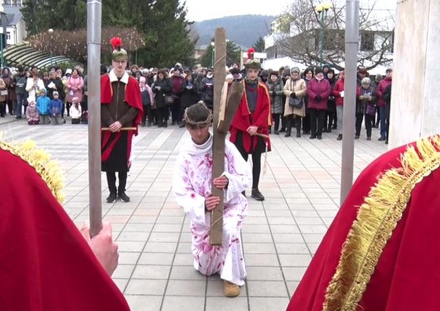 Považská Bystrica 1. apríla (TK KBS) Palmová nedeľa v Považskej Bystrici ožila hlbokým duchovným zážitkom. Farnosť Rozkvet v spolupráci s mladými veriacimi pripravila dramatizovanú krížovú cestu, ktorá napriek mrazivému počasiu pritiahla do ulíc mesta početný sprievod.