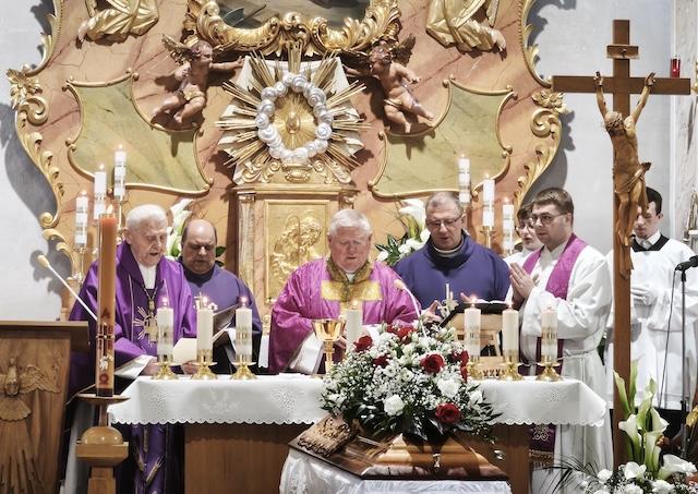 Pohrebnú svätú omšu slávili vo farskom Kostole Svätej rodiny a sv. Imricha. V závere svätej omše zazneli príhovory. Emeritný trnavský arcibiskup sa podelil s prítomnými o osobné spomienky na zosnulého kňaza a povzbudil ich k nasledovaniu jeho príkladu vernosťou Bohu, Cirkvi a národu.