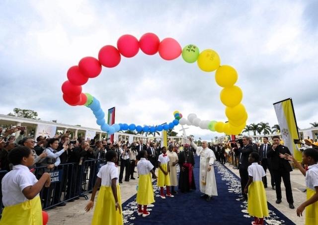 Rovníková Guinea 23. apríla (TK KBS) Jeden z najkrajších momentov dňa sa odohral pred veľkou svätou omšou v bazilike v meste Mongomo. Pápež Lev pristúpil k skupine detí, ktoré ho čakali s pestrofarebnými balónmi usporiadanými do tvaru ruženca.